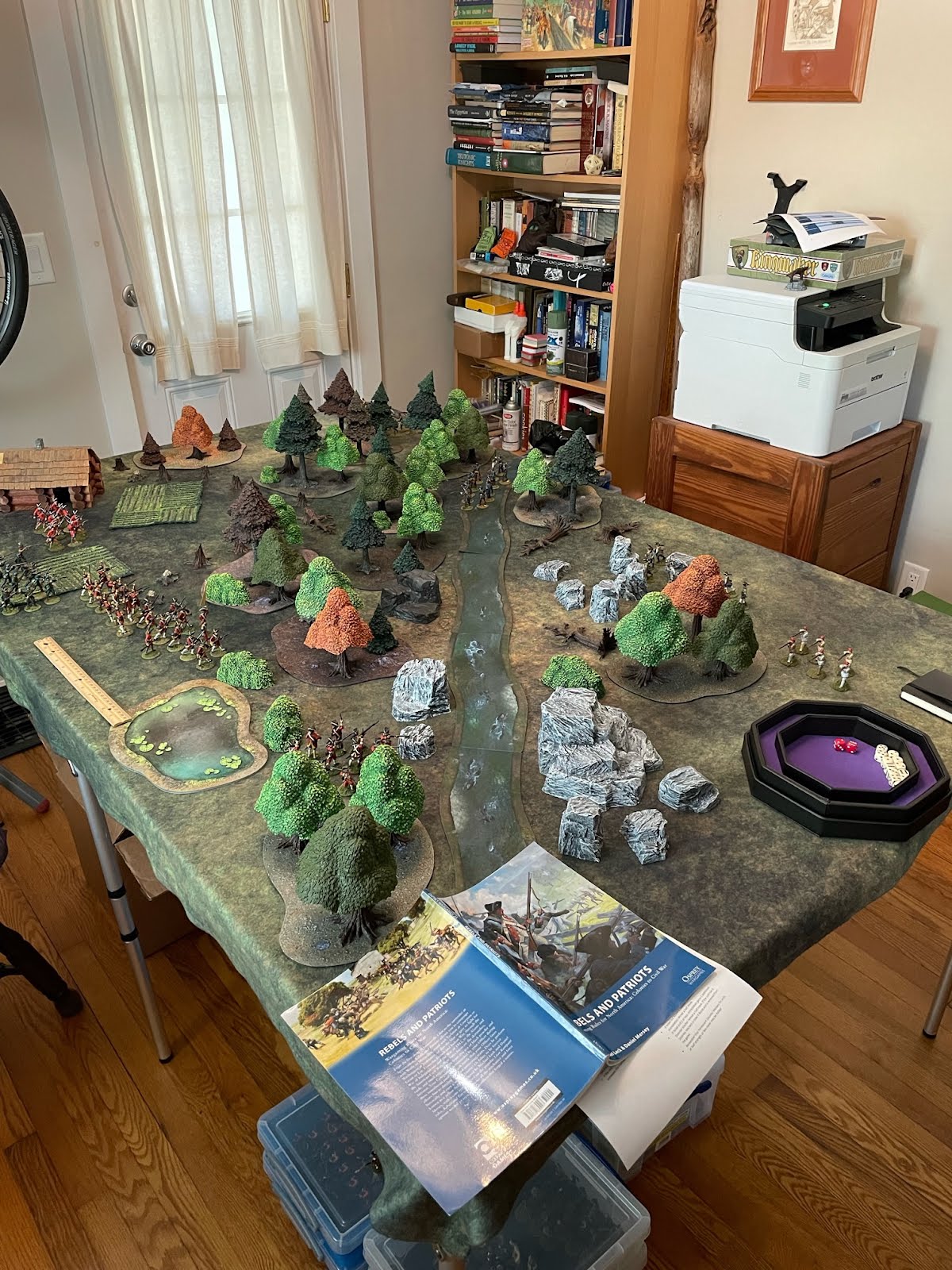 So, that was barrage from my foxhole. In addition to playing the four games (#42-#45 in this year’s log), I must have priced my flea market stuff appropriately to sell, since I went with a project in three boxes (60mm medievals, fare well in your new home) and four document boxes of stuff, and brought home nothing of that except one bag of old Ral Partha Renaissance troops, a set of rules, and an unbuilt card model of a castle. I picked up some terrain, a few 1/72 plastics for a future DBA early Byzantines and opponents set, and a couple of used board games. Even with that, the balance went to “less stuff than I started with”, so it was a success. Overall, it was a great convention, and I am looking forward to our Cold Wars replacement, “Cold Barrage”, now scheduled at the same location for 2 March 2024.